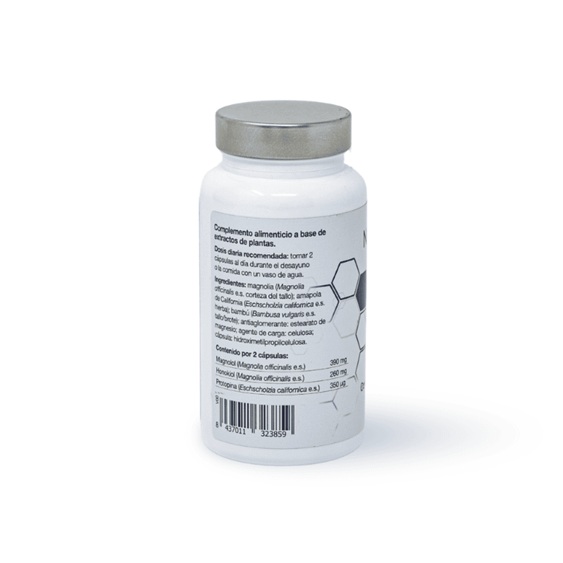 Ingredientes: Magnolia (Magnolia officinalis) e.s. corteza del tallo; amapola de California (Eschscholzia californica) e.s. hierba; bambú (Bambusa vulgaris) e.s. tallo/brote; antiaglomerante: sales magnésicas de ácidos grasos; agente de carga: celulosa; cápsula: hidroximetilpropilcelulosa.