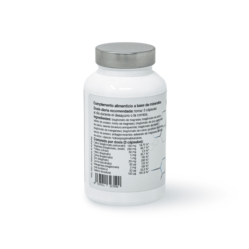 Principios activos: Magnesio, Calcio, Potasio, Selenio, Hierro, Manganeso, Cobre y Cromo, esenciales para el bienestar integral.